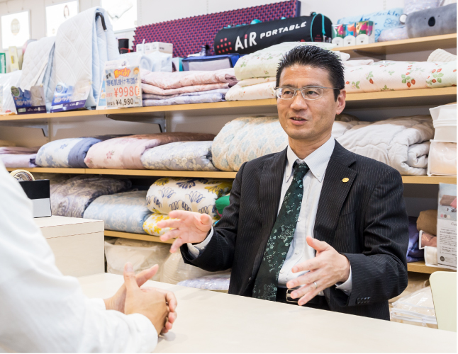 大正時代から続く老舗寝具店の3代目。ECサイトの台頭や布団需要の低下を受け、2014年に実店舗を大幅リニューアル。現在、実店舗とECサイト6店を併用しながら、売上拡大を図る。